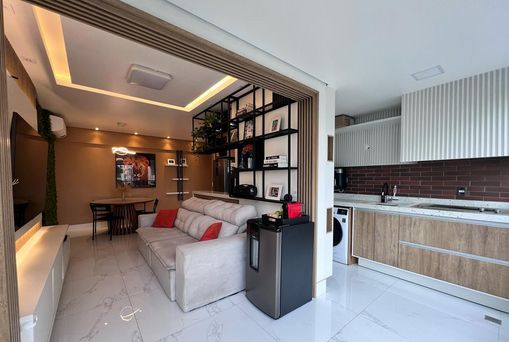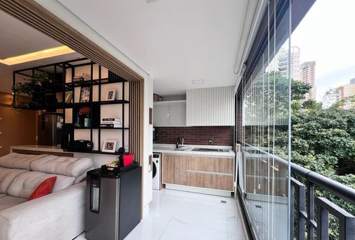 -Sala ampla com acesso à sacada envidraçada, proporcionando ainda mais iluminação natural