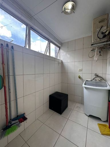 A área de serviços, com tanquinho de lavar roupas, reforça a proposta de praticidade, tornando as tarefas domésticas mais simples e eficientes.