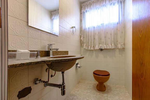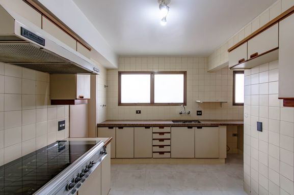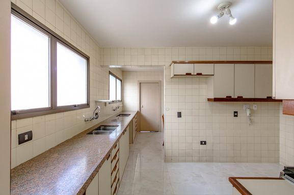 A área de serviço é completa e funcional, com copa, cozinha, despensa, lavanderia, além de 2 dormitórios de empregados e banheiro de serviço.