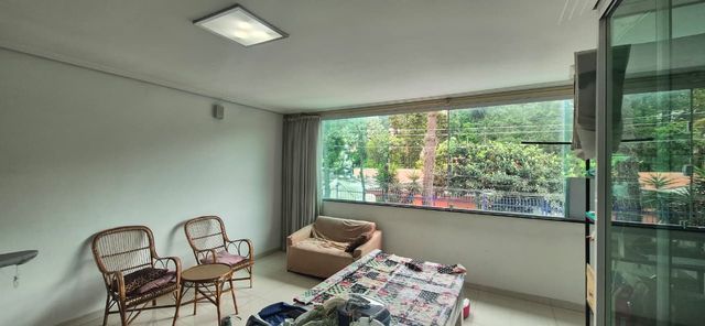 Sala ampla para dois ambientes, com varanda envidraçada — perfeita para atelier, home office ou área de leitura