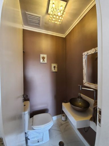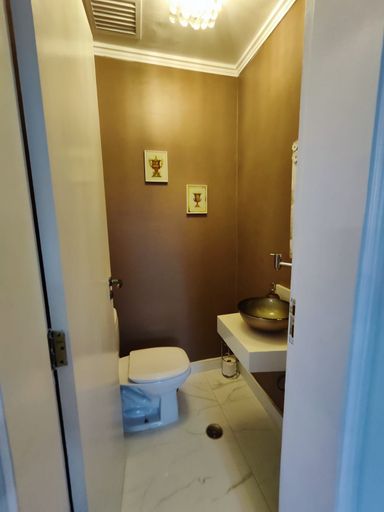 Conforto nos Detalhes: Lavabo elegante para visitas, banheiros modernos com gabinetes e box de vidro, além de dependência completa para funcionários.