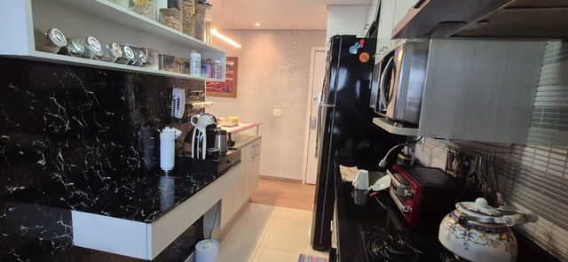 Teto rebaixado de gesso com exclusiva iluminação em LED. Armários planejados em todos ambientes, 02 lindos banheiros, cozinha também já com armários, lavanderia top e ainda uma vaga de garagem.