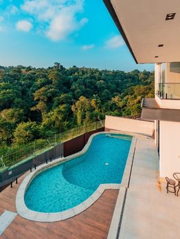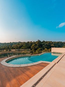 Na área externa, o destaque vai para a belíssima piscina e o amplo espaço de convivência, tudo com uma vista maravilhosa para a mata, trazendo tranquilidade e exclusividade.
