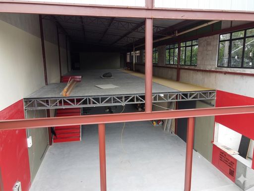 Andar Superior (220 m²): Salão amplo ideal para escritórios ou estoque, equipado com mais 2 banheiros e depósito adicional.
