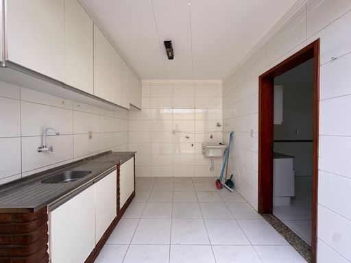 A área social oferece uma sala ampla para dois ambientes, perfeita para receber familiares e amigos. A cozinha planejada com armários modernos traz praticidade e organização ao dia a dia.